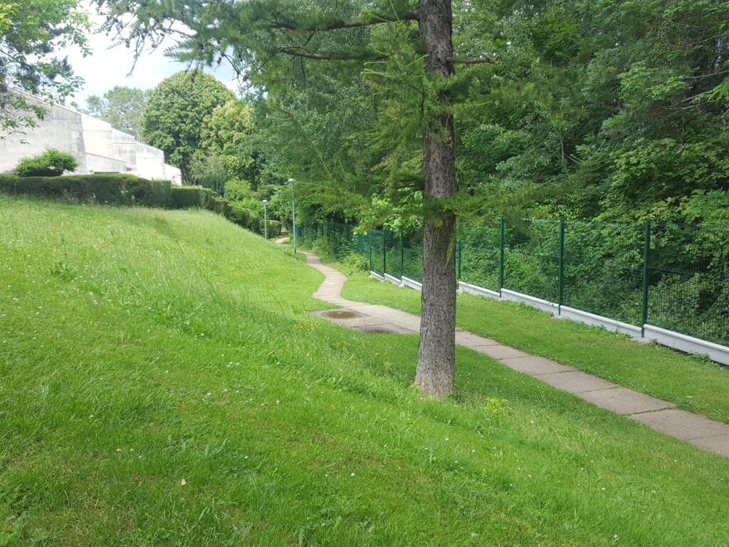Des bornes anti-stationnements ont été rajoutées , et les bordures jaunes repeintes sur les emplacements gênants soit la circulation des véhicules d’entretien du parc, soit la circulation de nos véhicules.
